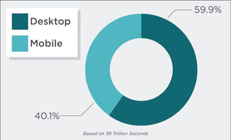 V letu 2017 je na pametnih telefonih zaznanega 59,9% celotnega internetnega prometa. Delež desktopa je bil le 40,1%.