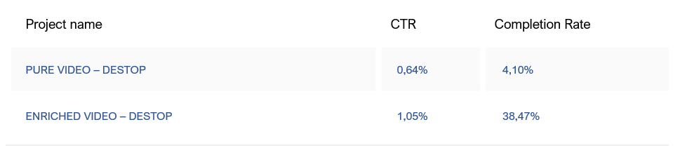 V Get Interactive na sestanku stranki pokažemo primere dobrih praks iz video oglaševanja, podamo možnosti, kako obogatiti njihove video posnetke, ki jih npr. že uporabljajo ali šele pripravljajo. Prav tako primere podkrepimo z rezultati in pokažemo primerjavo med posnetki, ki jih prejmemo od blagovnih znamk in so namenjene spletnemu oglaševanju in tistimi videi, ki smo jih še sami dodatno obogatili, opremili znotraj studia. Rezultati jasno kažejo, da isti video na isti napravi lahko deluje bistveno bolje, če ga obogatimo, prilagodimo (primer ponudnika omrežnih storitev):